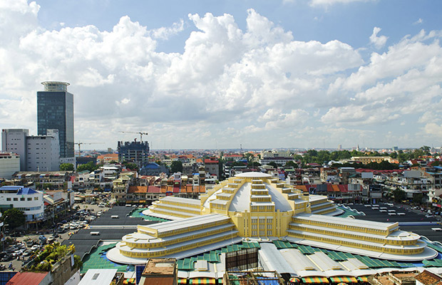 Shopping in Phnom Penh is a major attraction for tourists who love to buy back some souvenirs from this exotic Asian land. Central Market (Phsar Thmei) in Phnom Penh is one of those busy bazaars that are always filled with effervescent crowd from one end to the other. The Central Market (Phsar Thmei) of Phnom Penh stocks everything right from food items to clothes, silverworks and jewelries. Where the Central Market (Phsar Thmei) in Phnom Penh is now located was previously a swamp that was used to accumulate runoff rainwaters. The market building is a beautiful one, a spectacular instance of Cambodian architecture.Central Market (Phsar Thmei) of Phnom Penh in Cambodia also sells electronic items and there is also plenty of secondhand stuff that you can buy here at an affordable rate. The gateway to the market is lined with hawkers who sell different kinds of tidbits.