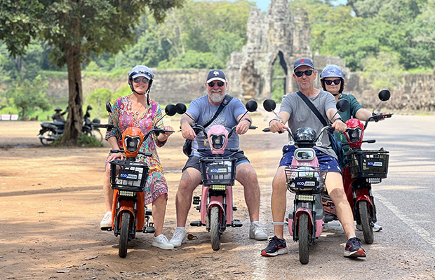 Depart at 4:40 am by riding Tuk Tuk with our professional English speaking tour guide to the sunrise at Angkor Wat temple. It takes about 20 minutes to ride from the city center to the temple and we may spend about 1-hour and 30 minutes to explore the whole entire building of Angkor Wat temple, and then start riding the e-bike to the Preah Dak village for our breakfast where you can enjoy of taste authentic Cambodian breakfast like Khmer rice noodle with fish green curry soup and traditional desserts like palm cake and steam rice dumplings with palm sugar. Before seeing our next temples, explore the interesting local market in Siem Reap and walk in between food stalls to look for the best Cambodian specialties, where you can try Cambodian dishes such as sticky rice, cakes, fruits, egg noodles, or even fried spiders and scorpion.