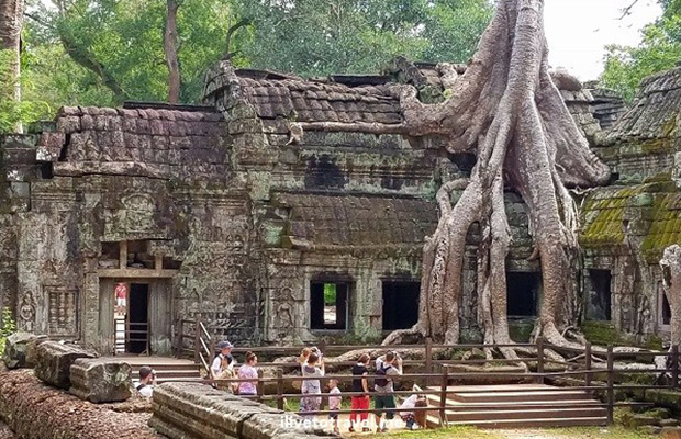 From here, travel to Ta Prohm—the location where the blockbuster movie Tomb Raider was filmed and a UNESCO World Heritage site. Observe the incredible way the golden spung trees have wrapped the ruins in a tight embrace. Snap a few photos here, before escaping the hottest part of the day to enjoy a well-deserved lunch.