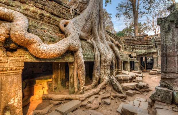 Breakfast at hotel, explore South Gate of Angkor Thom known as Big Angkor, the famous Bayon Temple. Terrace of the Elephants is an impressive, two and a half meter tall, 300 meter long terrace wall adorned with carved elephants and gradual that spans the heart of Angkor Thom in front of Baphuon - huge temple mountain in the heart of Angkor Thom, Royal Palace Area and Phimeanakas - impressive rite and sandstone pyramid. Terrace of the Leper King is at the north end of the Terrace of the Elephants, a double terrace wall with deeply carved nag as, demons and other mythological beings. Last you will visit Ta Prohm temple which is a wonderful combination of human genius and natural beauty! Giant trees have grown here for centuries and lunch at local restaurant!