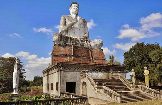 13km north of Battambang is Wat Ek Phnom, an impressive but extremely dilapidated temple situated next to a large pond and is behind a contemporary 28m high Buddha statue. Built during the 11th century, supposedly in 1029 under the reign of King Sorayak Varman II (1002-1050), today it has been mostly reduced to ruins and visitors have to climb over fallen masonry and huge blocks of stone in order to traverse the grounds. Because of this, and its tranquil setting, Wat Ek Phnom is a must for anyone visiting the Battambang area as it actually gives you the impression that you are discovering a forgotten temple.